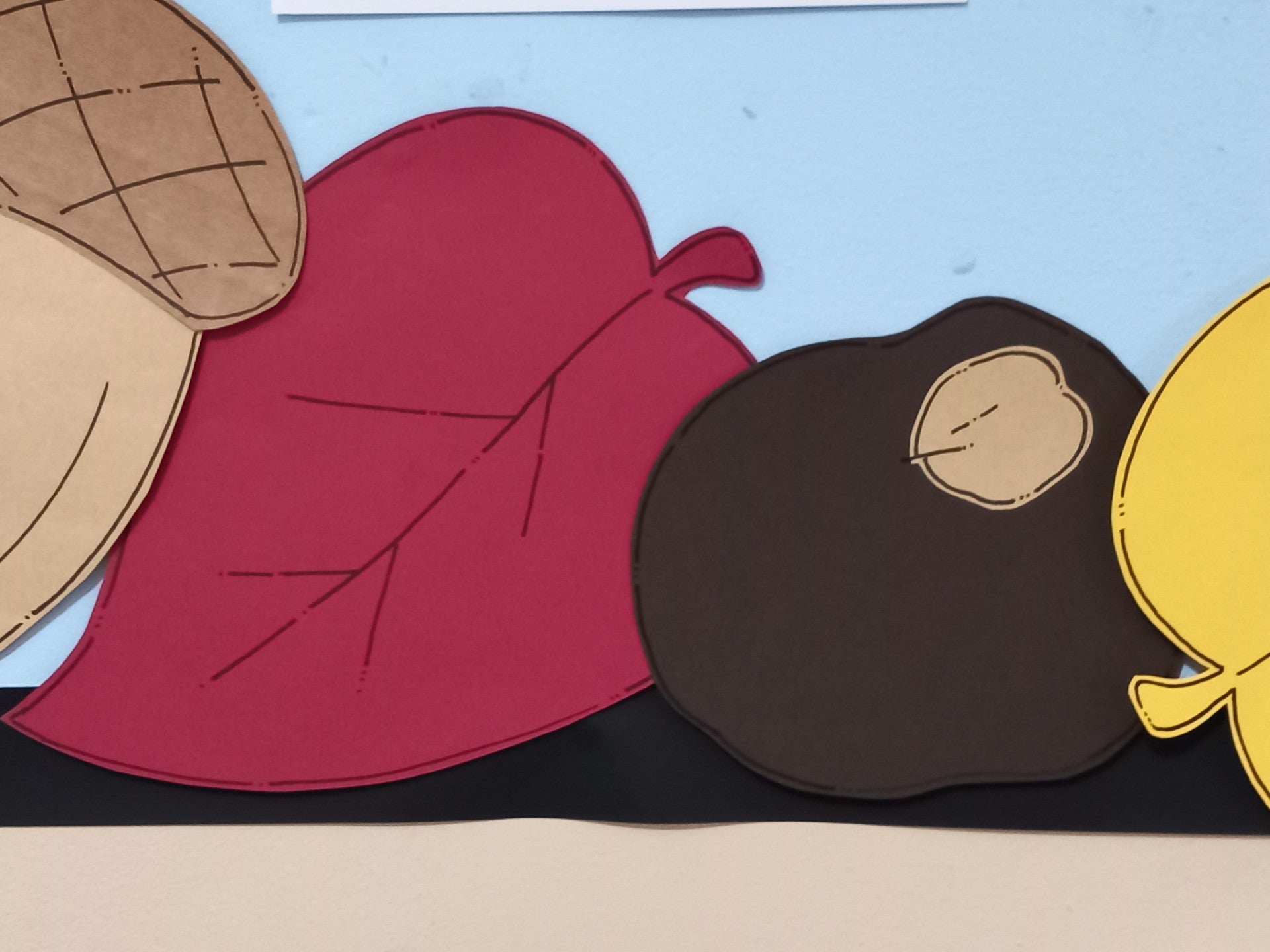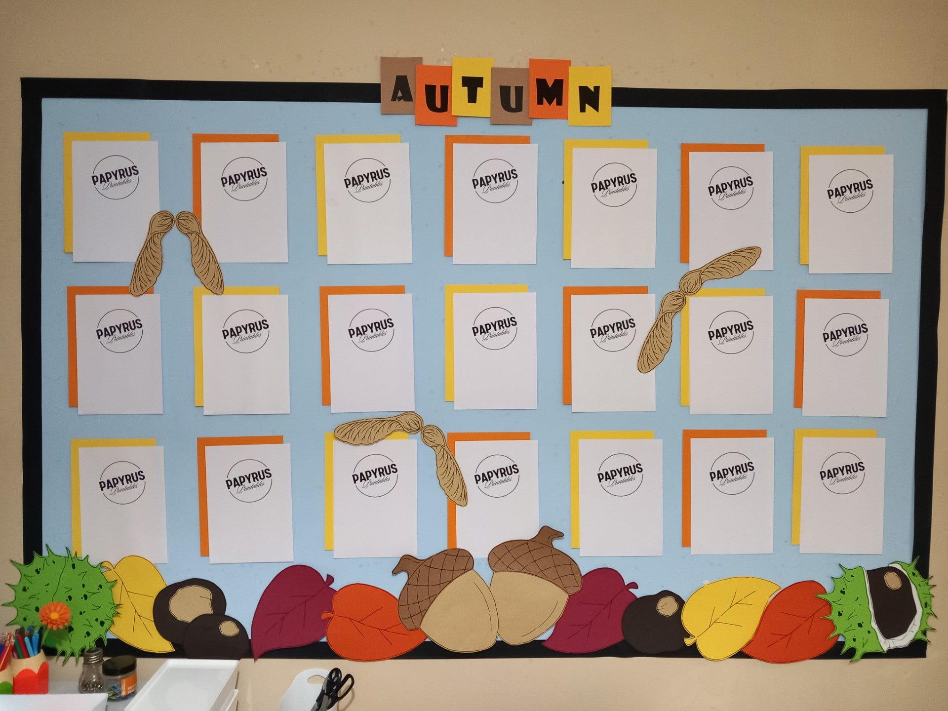 ✔️ Display pieces: conkers in several stages, acorns, autumn leaves, sycamore “helicopter” seeds, and title letters